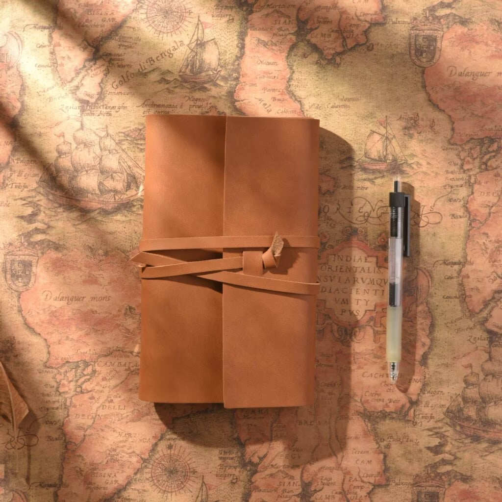 This travel notebook 12x19cm notebook boasts a smooth PU cover and a neat tie closure, offering two inner page choices: lined or blank.